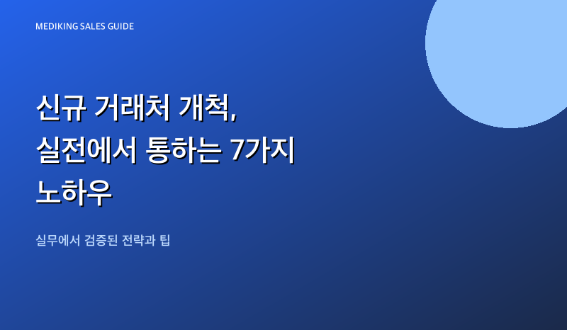 안녕하세요, 메디킹입니다. 이번 글에서는 「신규 거래처 개척, 이렇게 시작하세요! 실전 노하우 대공개」 주제로 현장에서 바로 활용할 수 있는 실전 노하우를 정리해드립니다.